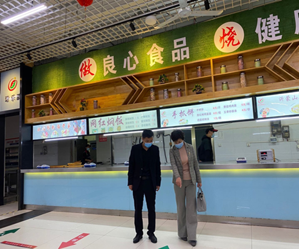食藥局梁隊長帶領(lǐng)全縣中小學(xué)食堂來餐廳參觀學(xué)習(xí)餐廳、廚房環(huán)境衛(wèi)生,物品的定位等。